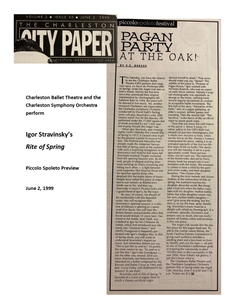 Stravinsky’s Rite of Spring, Piccolo Spoleto Festival Preview
