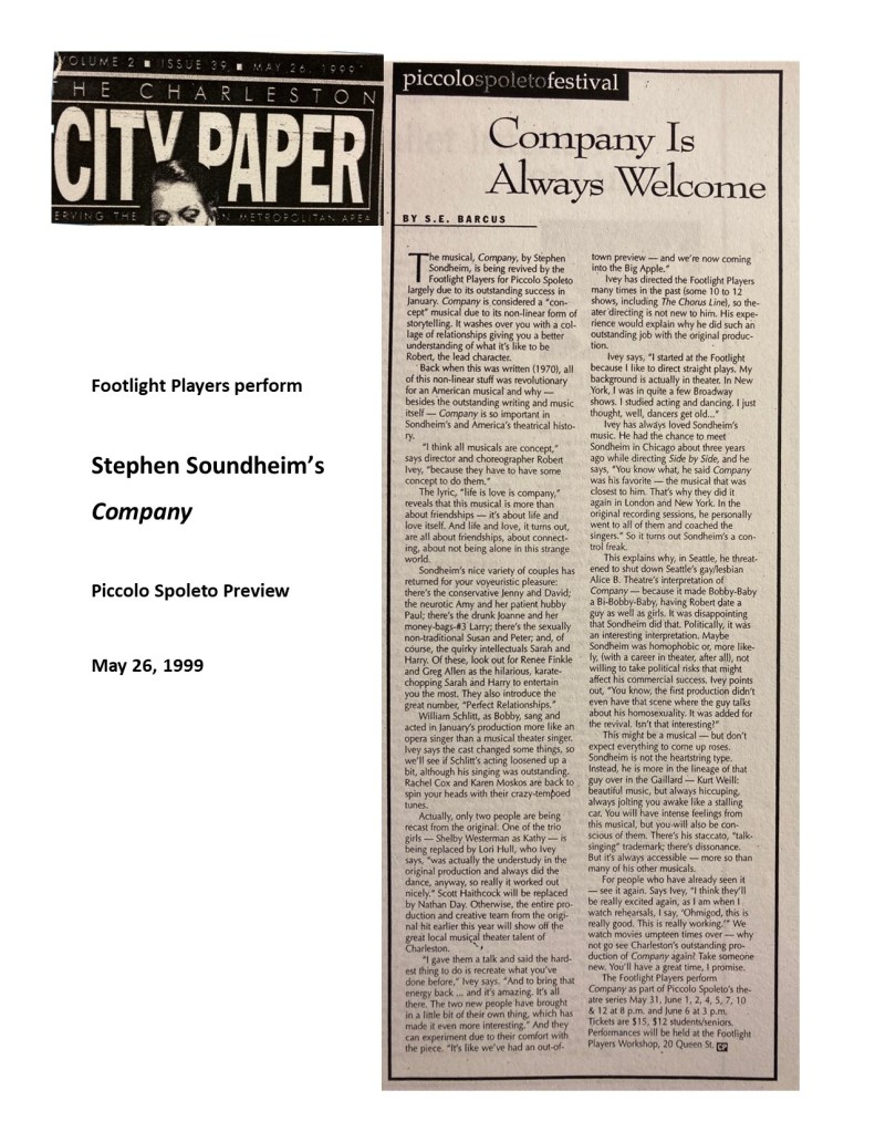 Stephen Sondheim’s Company, Piccolo Spoleto Festival Preview