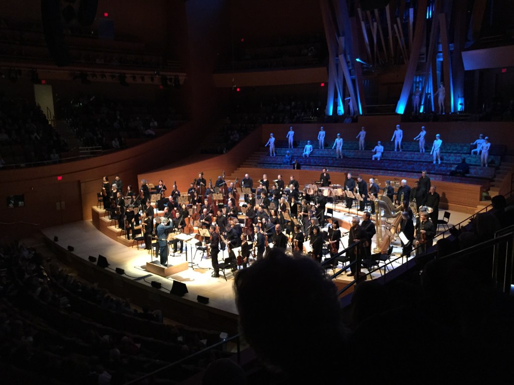 But then suddenly the lights dim, and we’re off — the invented Narrator speaks abruptly, and when finished, Salonen pops up from between violins and starts conducting without a beat. No grand entrance. No applause or cult worship. Just the music. Just a plea to have us all experience this music together without an “us” and a “them”; without an “orchestra” and a “audience”.