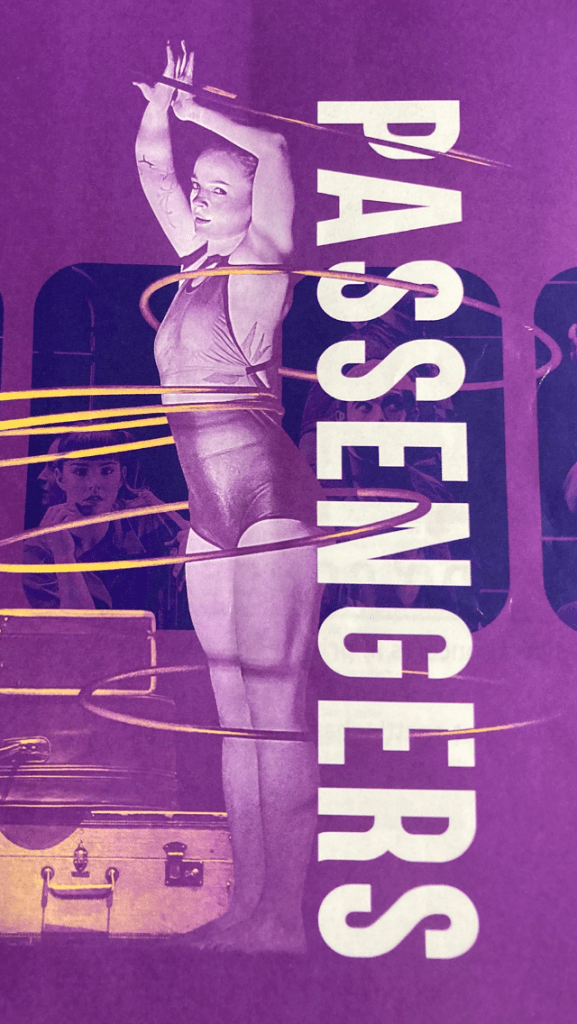 Passengers, the contemporary circus piece (a genre that is a “new venture for Seattle Rep”) was directed, written, and choreographed by Shana Carroll and produced by the creative collective, “The 7 Fingers.”  Our creator says in the program notes that she knew, based on her life experiences, that she always “wanted to do a show centered around the cinematic world of trains.”  She accomplished this tonight.  Einstein on the Beach set designers would be proud.