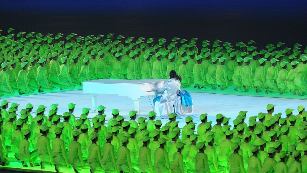 When one hears that Lang Lang is a very “communicative” artist, as masters like Pavarotti (5’50”) and Herbie Hancock have exclaimed — this is, in part, what they are all talking about. This “exaggerated” bodily technique. Not the “correct” technique one learns from a piano teacher, as to how to play, say, a slow arpeggio “correctly” up the keyboard with the right hand (thumb, pointer, middle, then cross the thumb under and repeat, and so on, so as to make the arpeggio seamless and easy on the fingers, etc.). No – with Lang Lang – one will instead, at times, see a big arm movement, with pointer-finger-only, going up the whole arpeggio, slowly savoring each note. Often looking right at that note, like he’s having a conversation with the keys, and the piano, itself. And while this might not be the “correct” technique for pianists, it sure as heck is correct technique for a performance in a large auditorium, because even that person in the very back can appreciate what he is producing and expressing for them, just as easily as if they were sitting right there next to him during some piano teacher’s living room recital. This is the “technique” of a Showman. And a friggin’ super-genius of a Showman, at that.