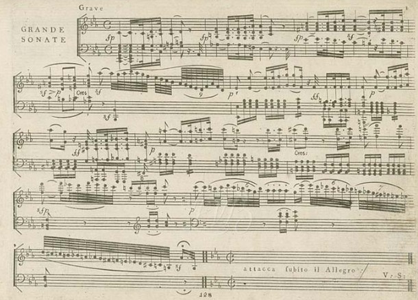 When done with the Mozart, he bowed for the applause, then fell right into the Pathetique’s first crashing chord — before his butt even hit the chair! Now, it’s hard to get the same sort of “SURPRISE!” out of the Pathetique’s famous sudden bursts of extreme dynamic changes that Beethoven first shocked audiences with, over 200 years ago. No one had ever leveraged the potential, and relatively new power of — DYNAMICS! — on a keyboard instrument before Beethoven did with this very sonata. (It is a “piano-forte”, after all!) So, here, over 200 years later, jumping into that first chord so unexpectedly, before we had even stopped applauding the previous piece, was a consciously good decision by our performer.